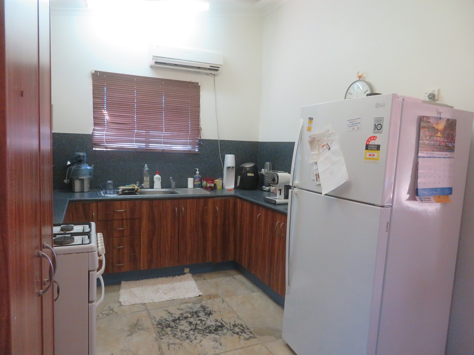 The kitchen is easy and functional with gas cooking, pantry and room for a good size fridge.