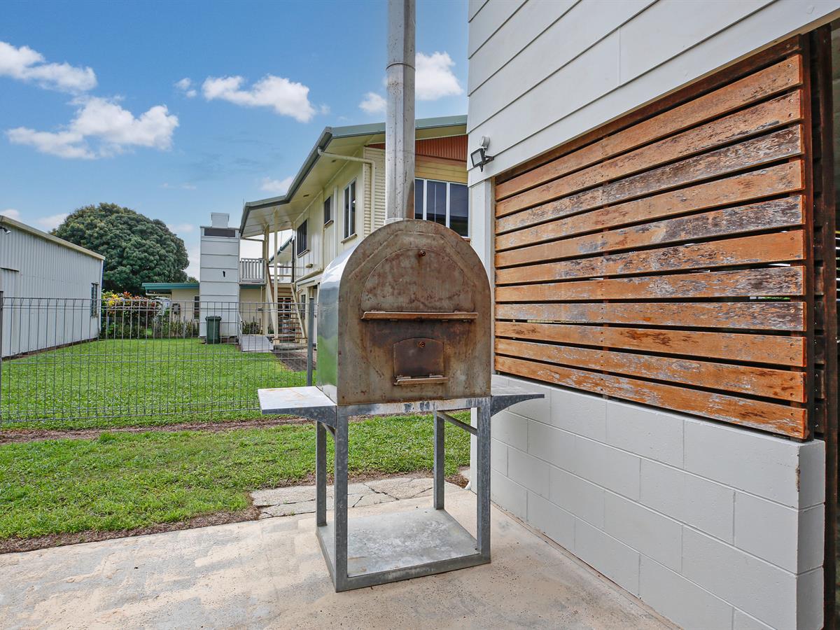 There is plenty of room for extra beds if you have an extended family. The double garage is a drive-through to the fully fenced backyard, which is perfect for outdoor living and entertainment. There is a Pizza Oven, which gets the party started. But the super bonus is the big shed—8m x 9m with easy access from the side.
