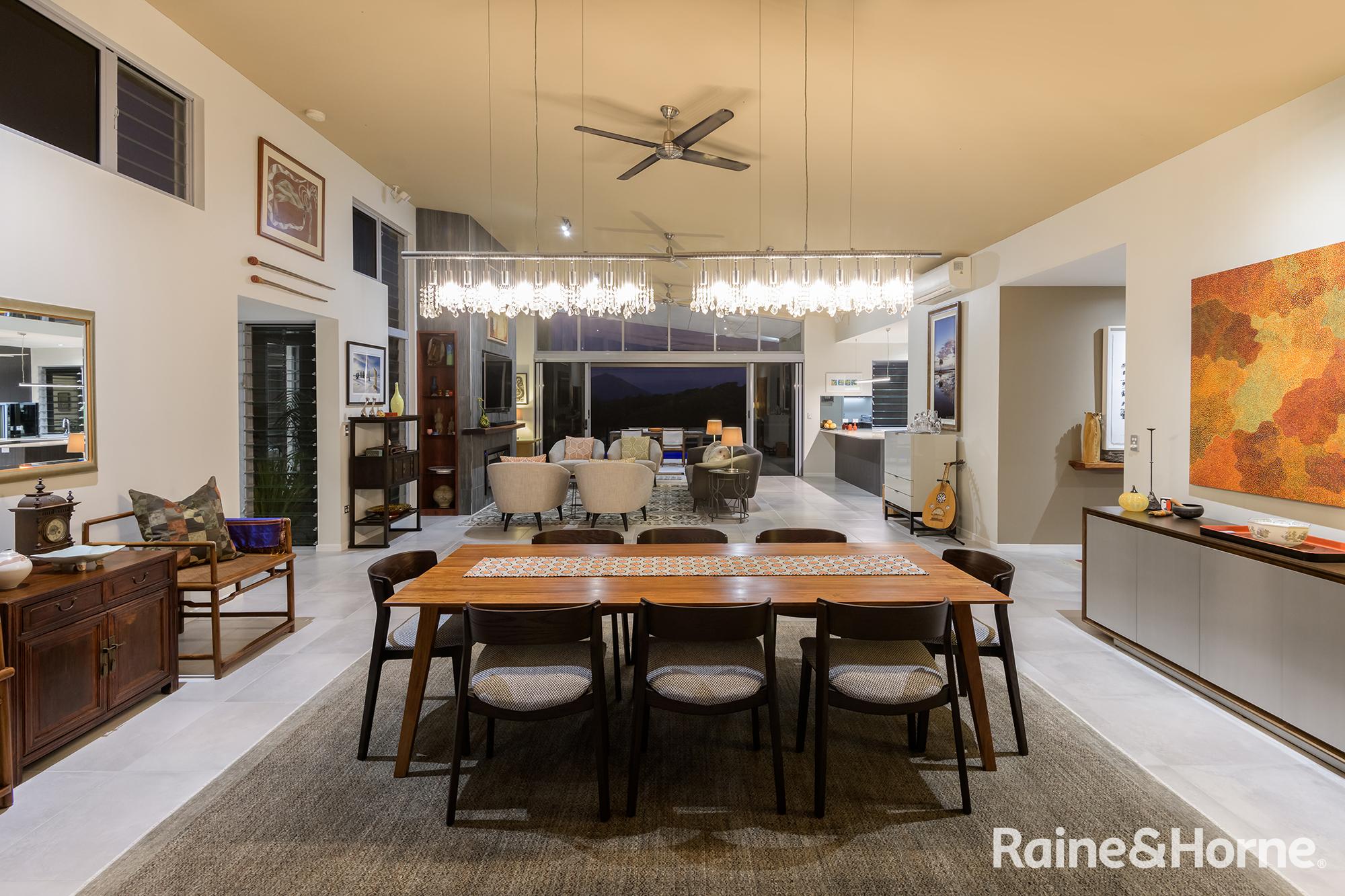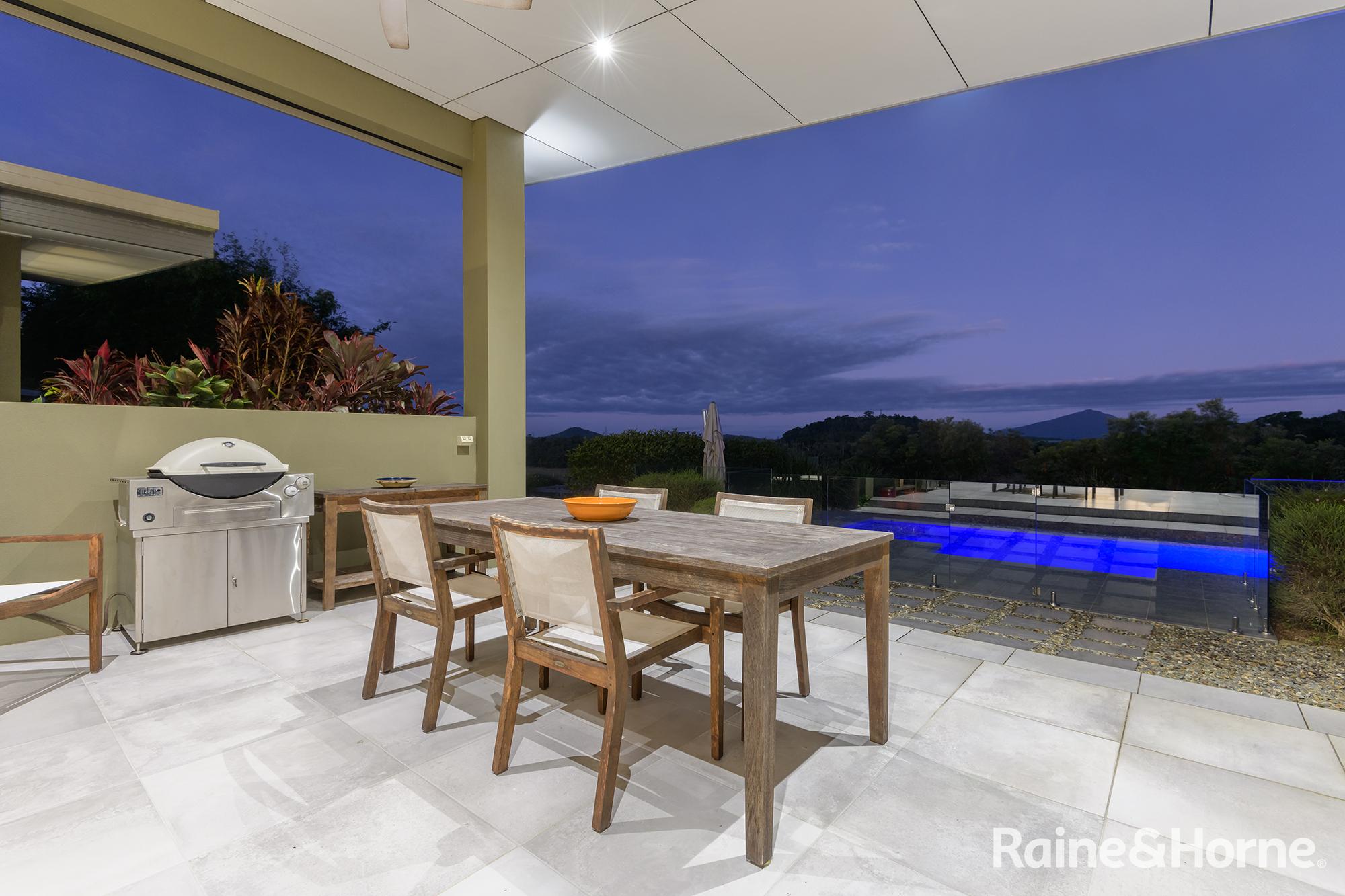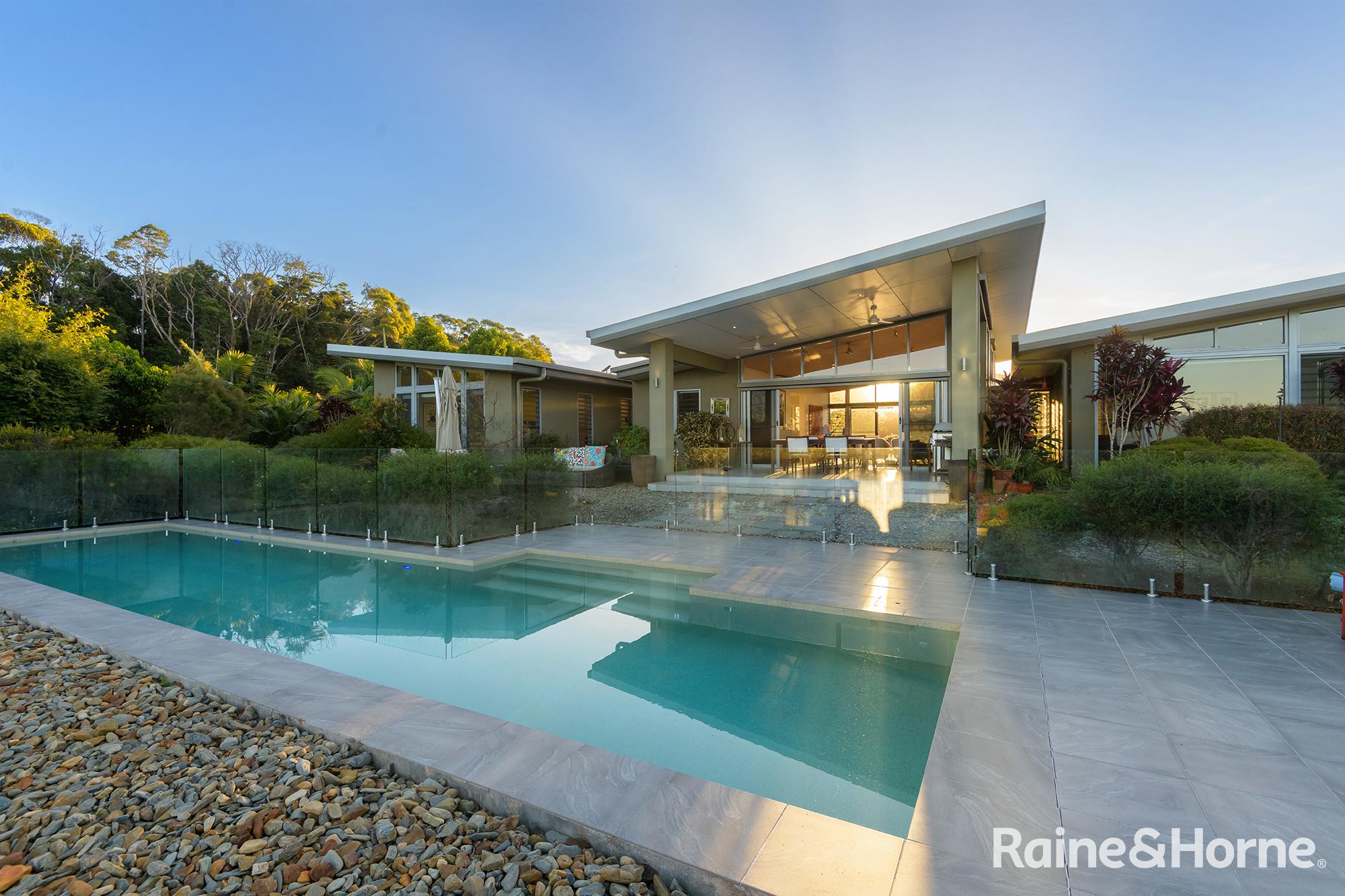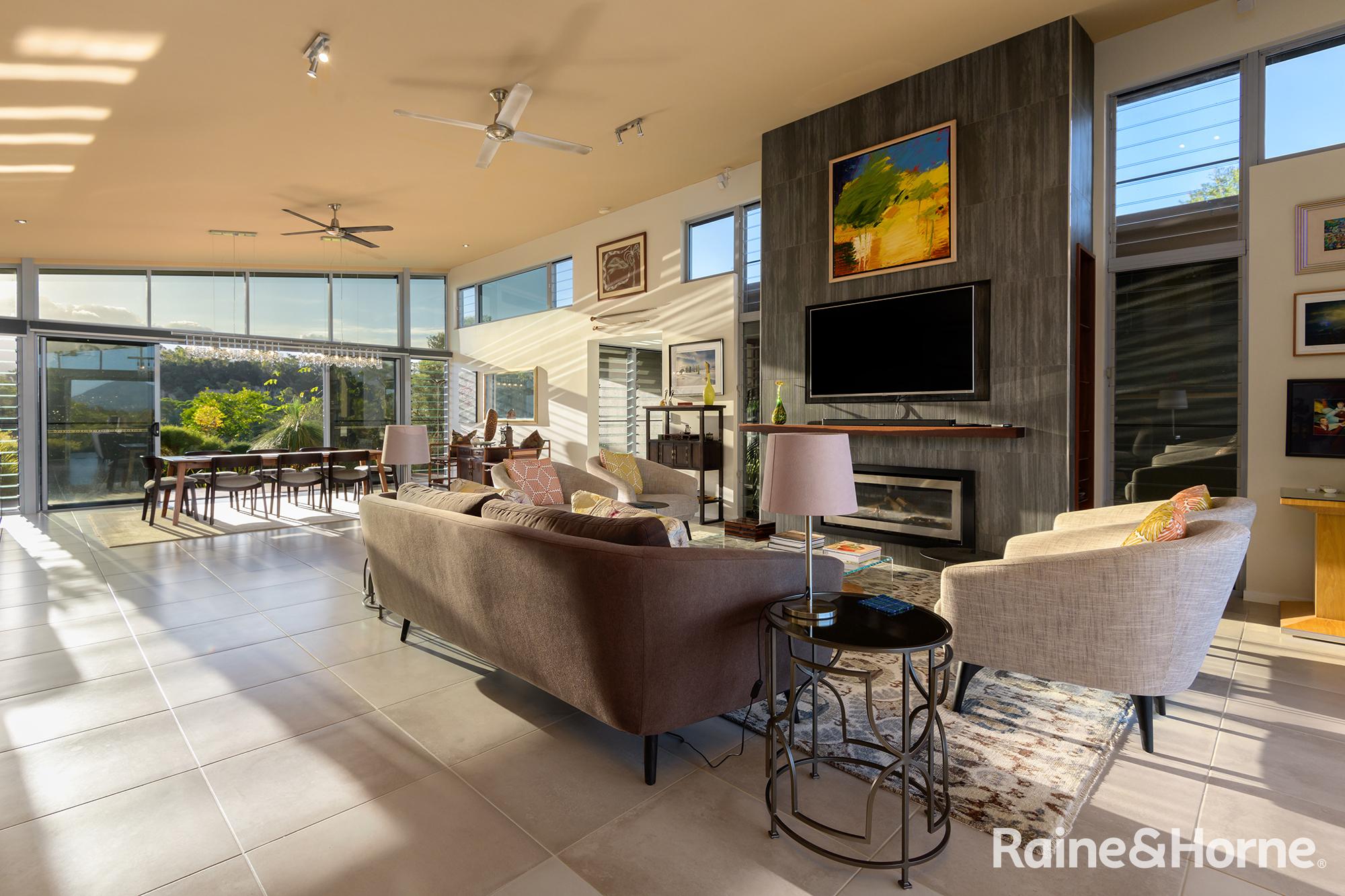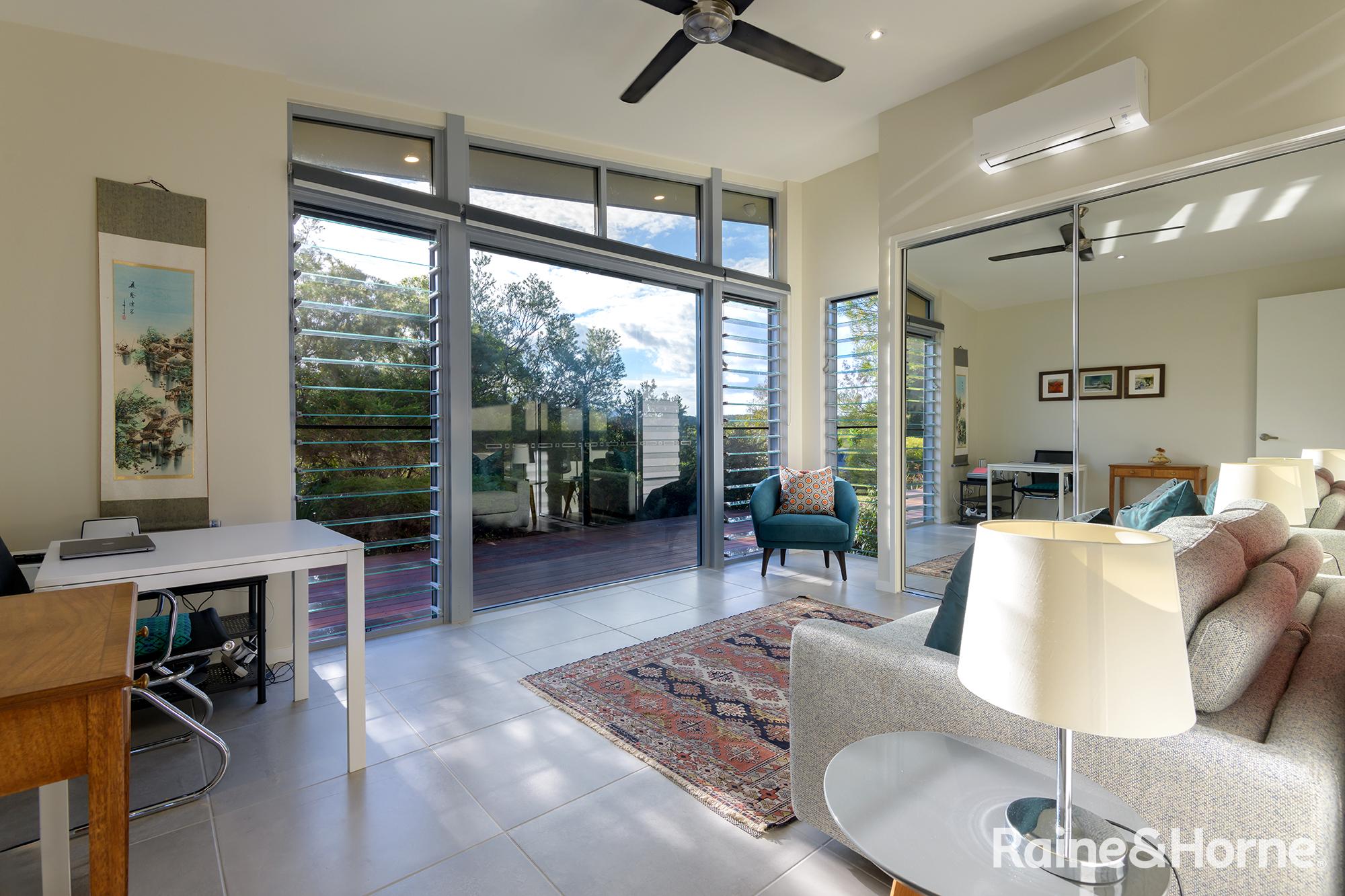 Summary • ~15 hectare property with creek at side and rear, views to Black Mountain and rainforest to the side along the creek line • House was a new build in 2016 and specifically designed for the site to make most of views of Black Mountain and the range and the prevailing breezes with louvred breezeways separating the bedroom wings from the kitchen, living and dining areas