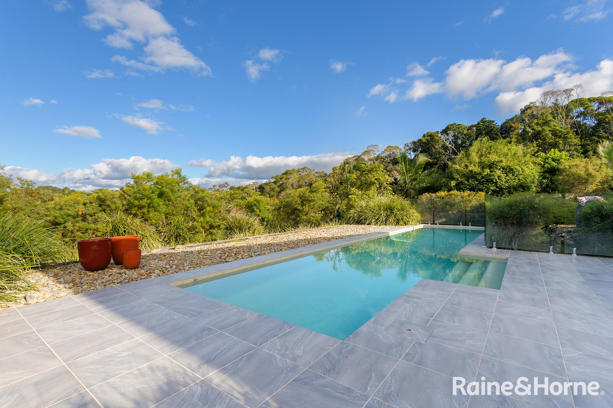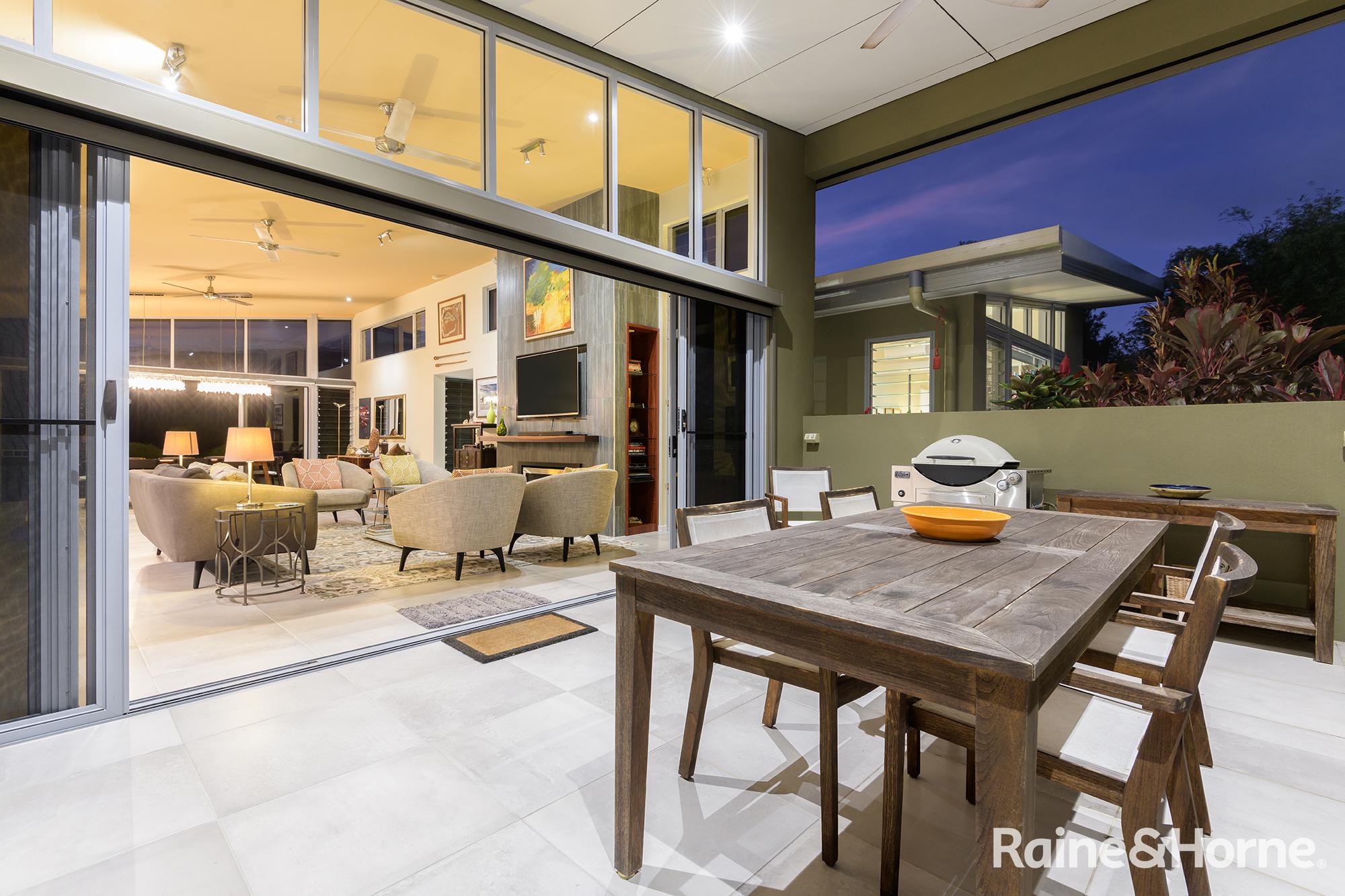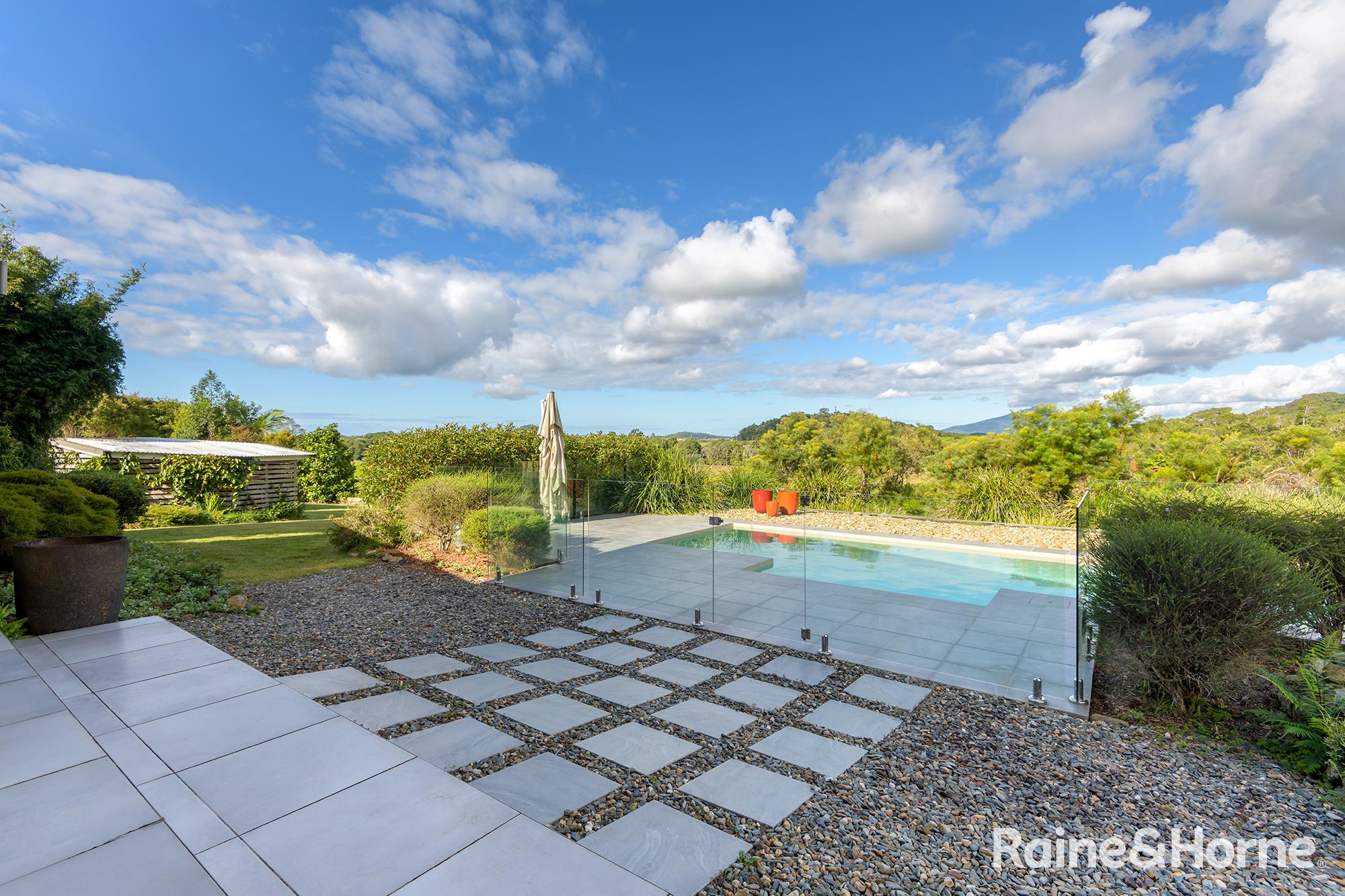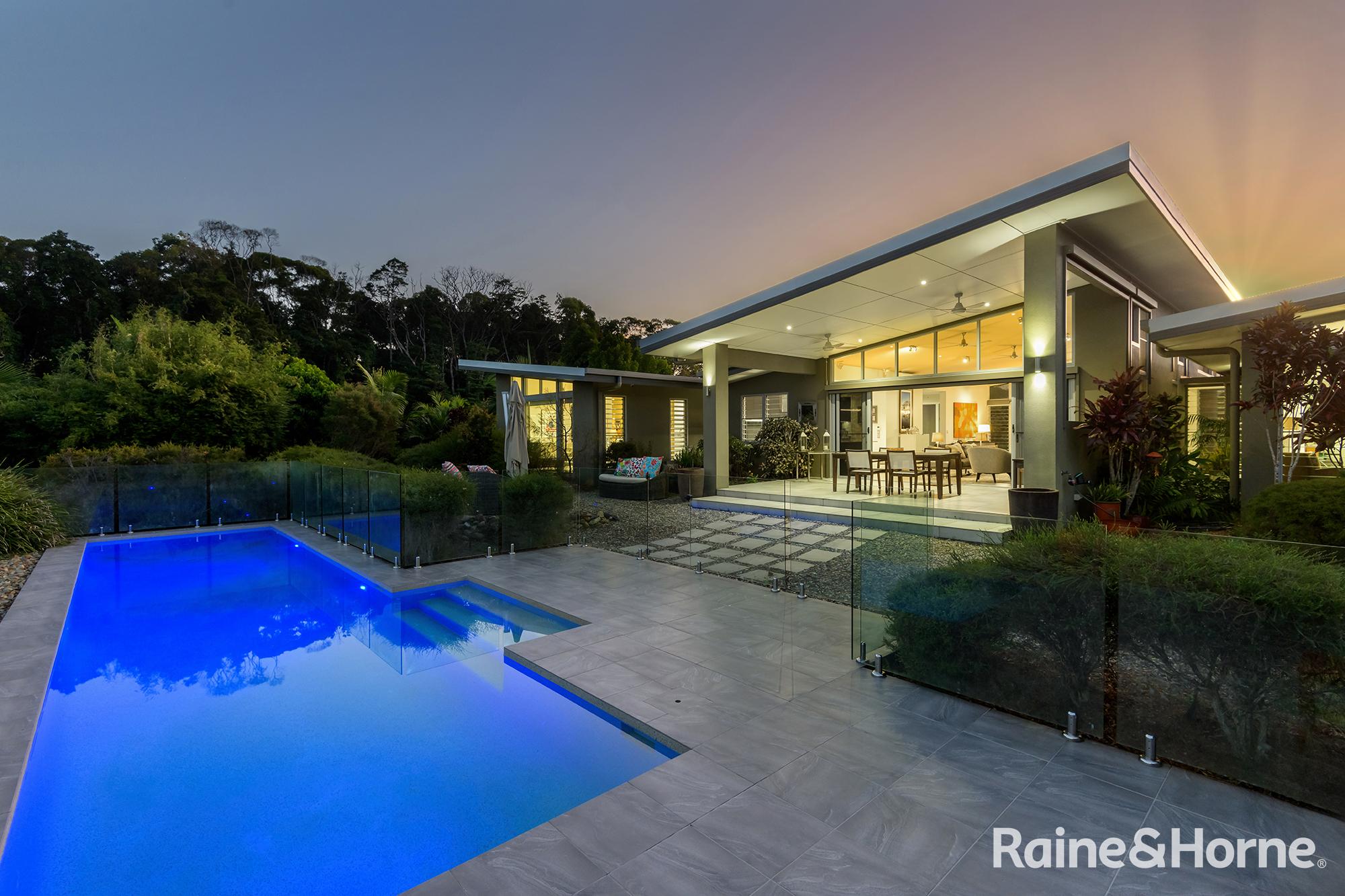Summary • ~15 hectare property with creek at side and rear, views to Black Mountain and rainforest to the side along the creek line • House was a new build in 2016 and specifically designed for the site to make most of views of Black Mountain and the range and the prevailing breezes with louvred breezeways separating the bedroom wings from the kitchen, living and dining areas