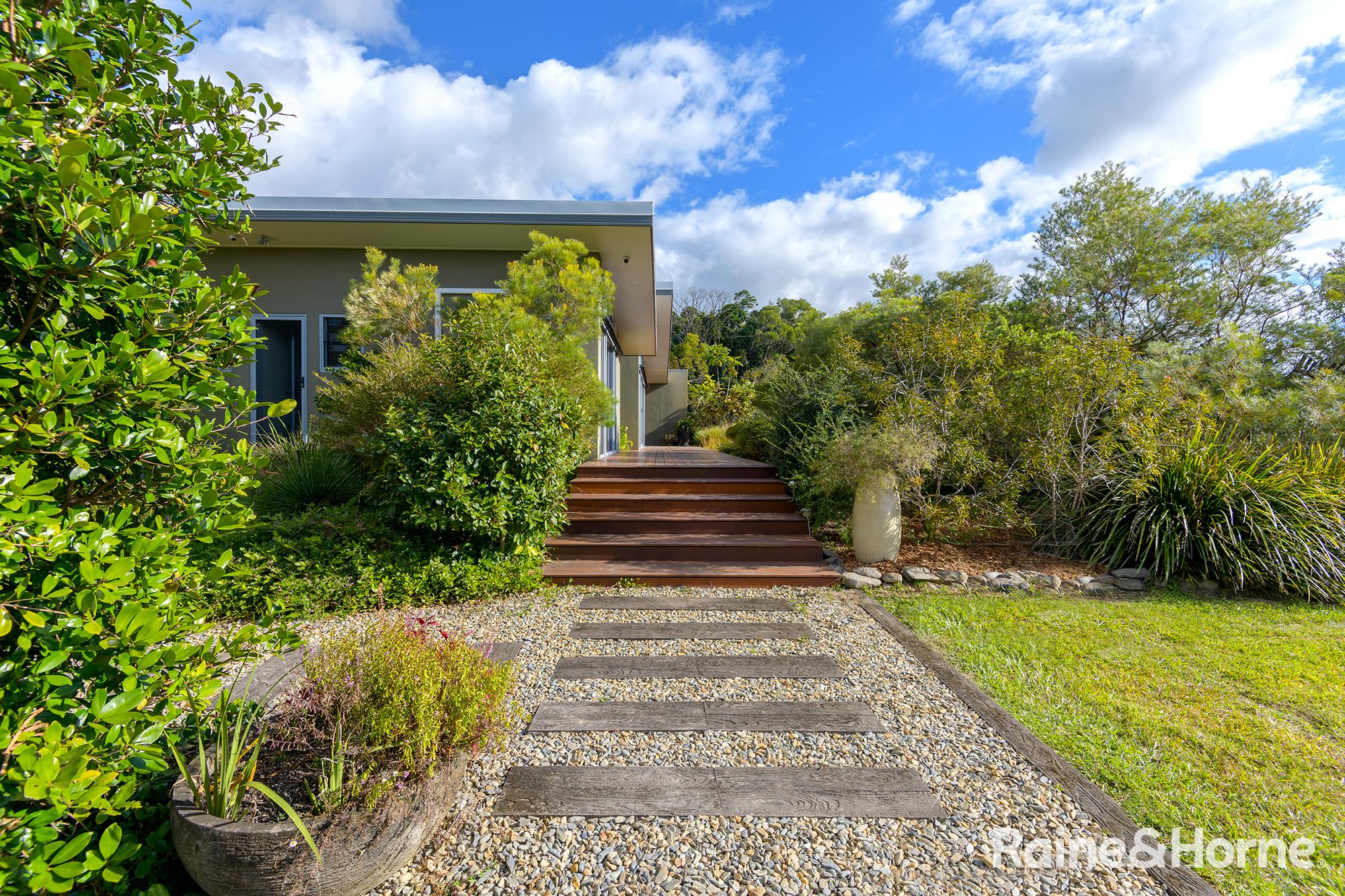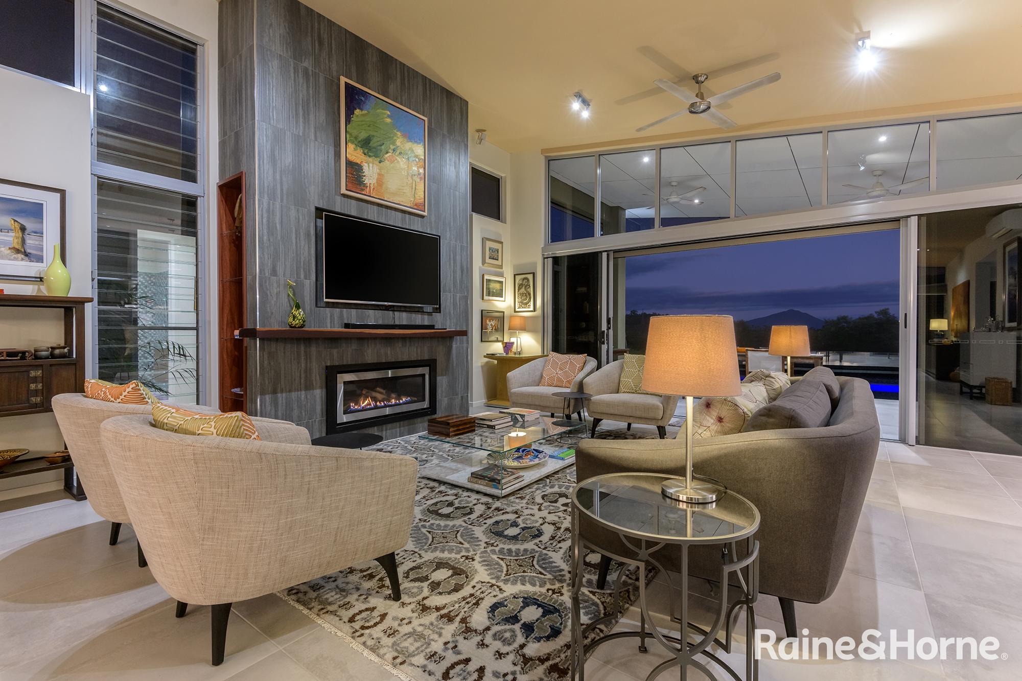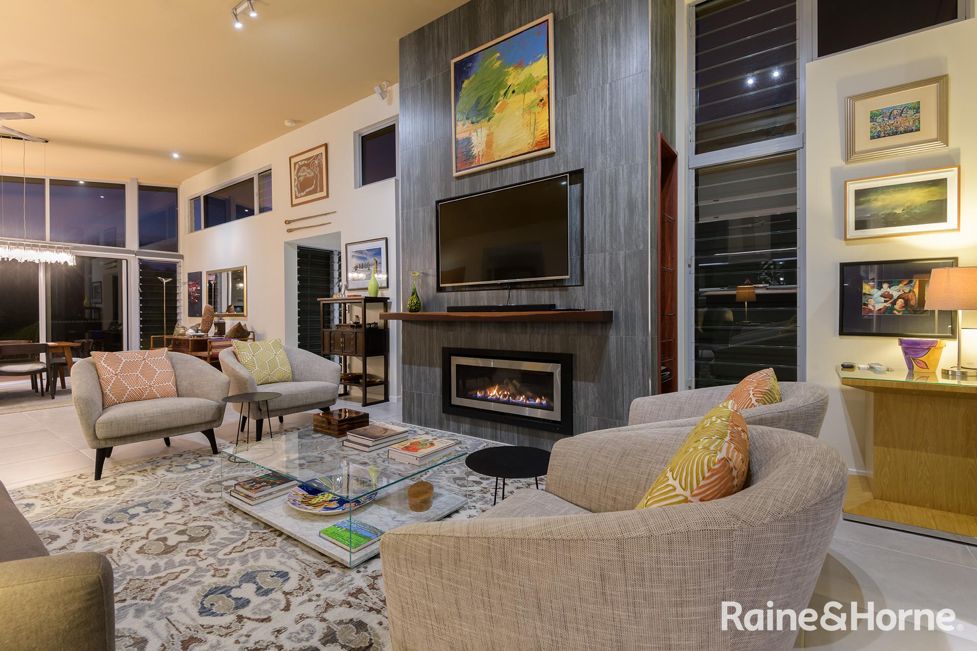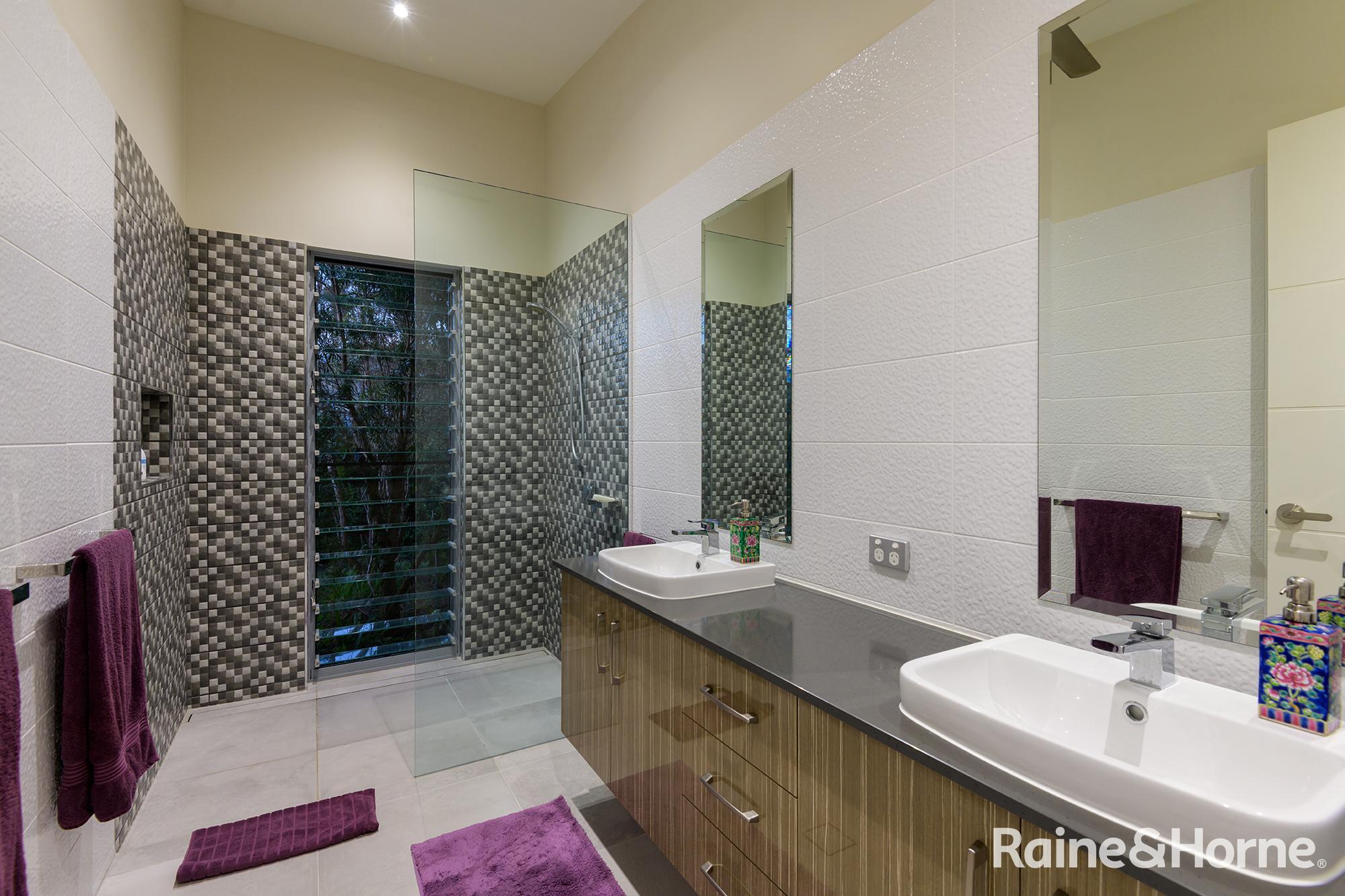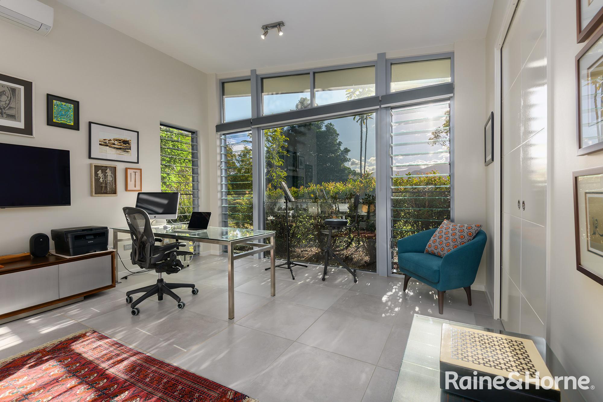 Summary • ~15 hectare property with creek at side and rear, views to Black Mountain and rainforest to the side along the creek line • House was a new build in 2016 and specifically designed for the site to make most of views of Black Mountain and the range and the prevailing breezes with louvred breezeways separating the bedroom wings from the kitchen, living and dining areas