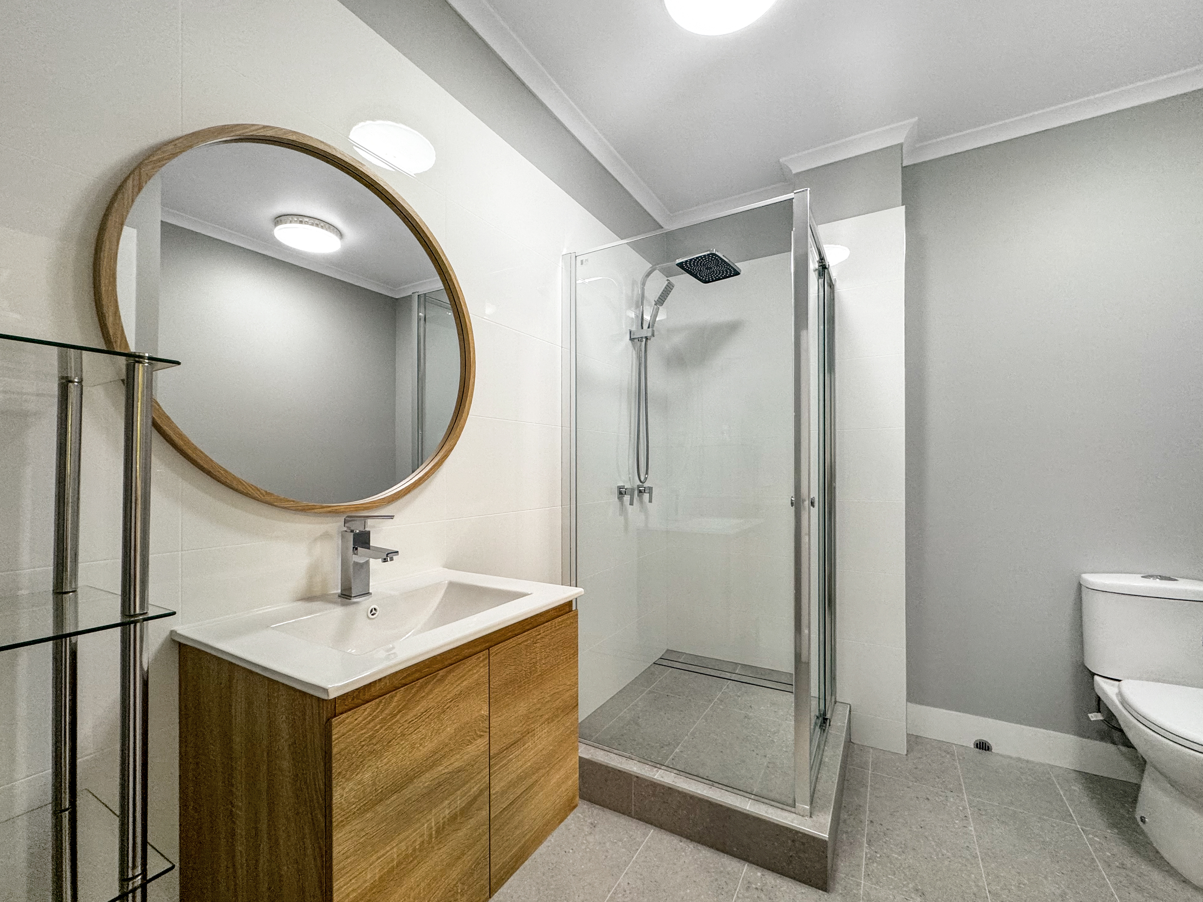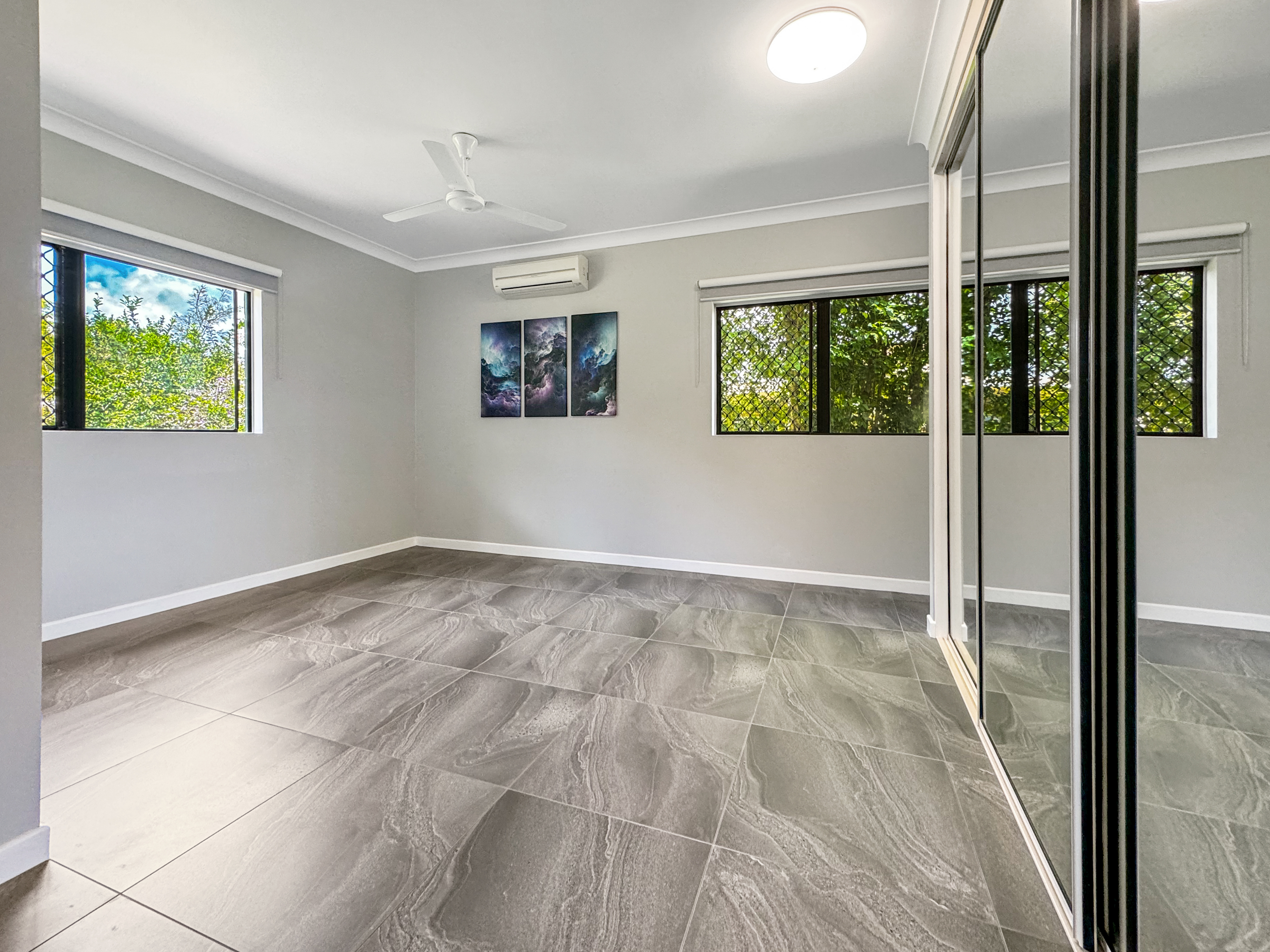 The property features three generously sized bedrooms, with the primary bedroom boasting newly tiled flooring and a renovated ensuite completed this year. Built-in wardrobes and air conditioning in all rooms ensure comfort year-round.