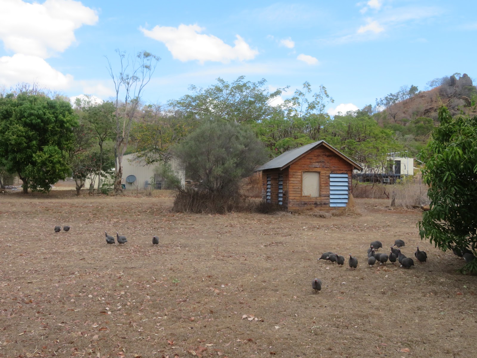 Everywhere in Chillagoe has an abundance of Guinea fowl, wallabies, galahs and more. Simple gardens at the front of the house screen it from the street.