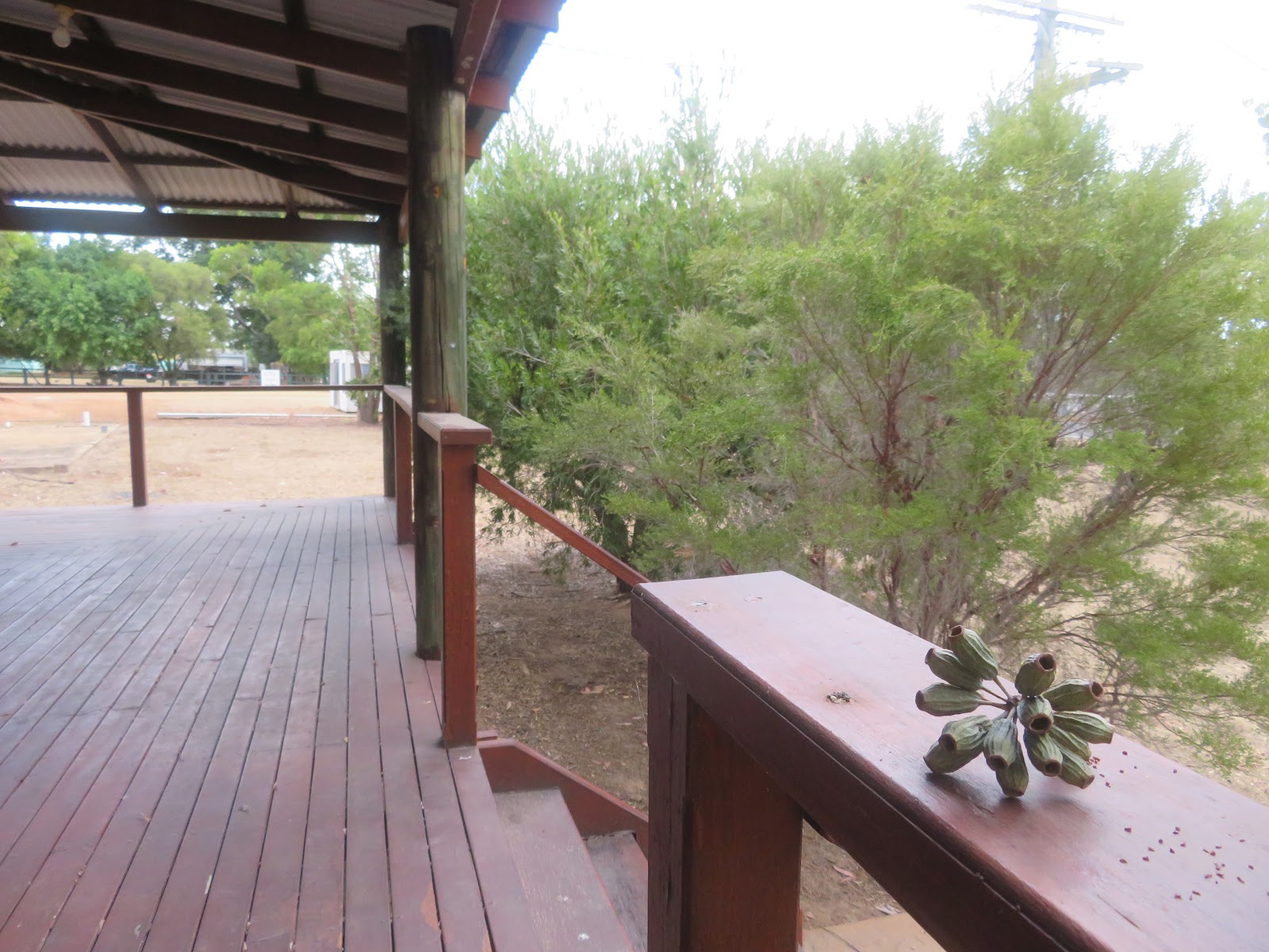 A funky studio house and a double block of 2023m2 of land. Just one big room with verandahs on three sides plus a shed at the rear. An extra concrete slab also in place (maybe another shed pad or carport).
