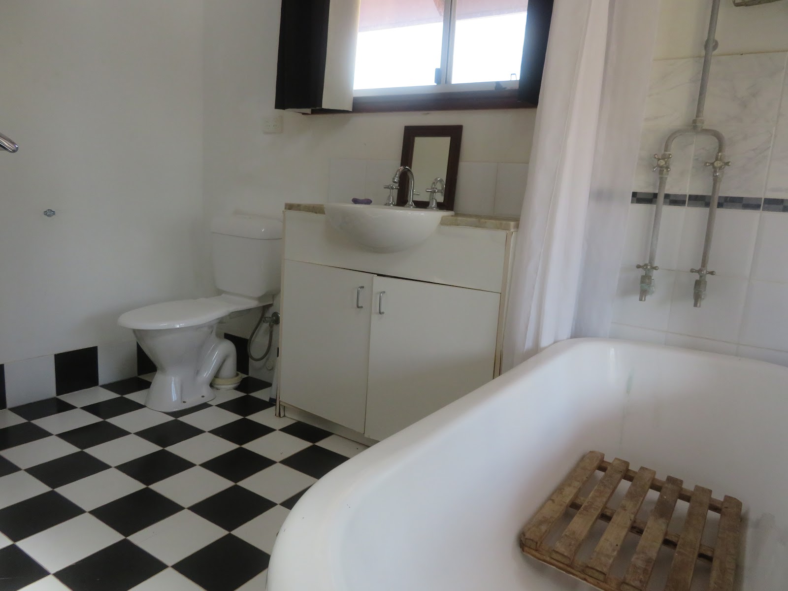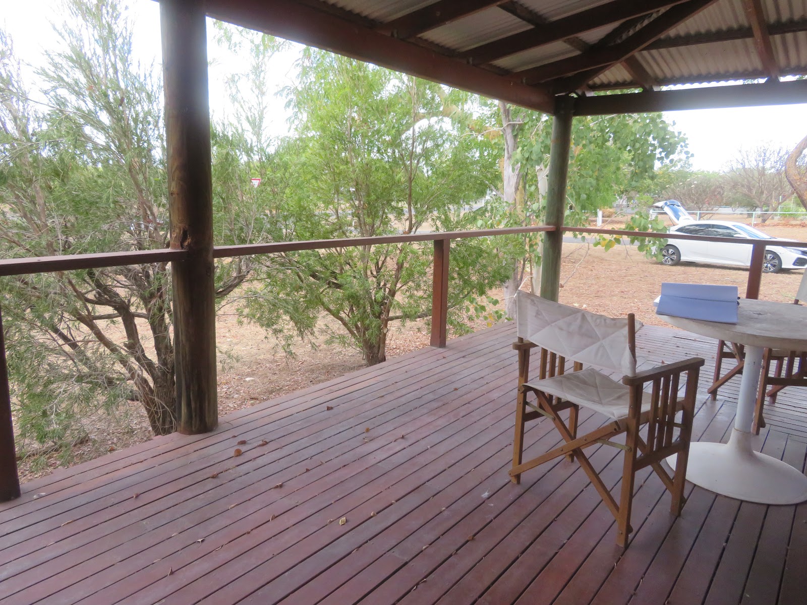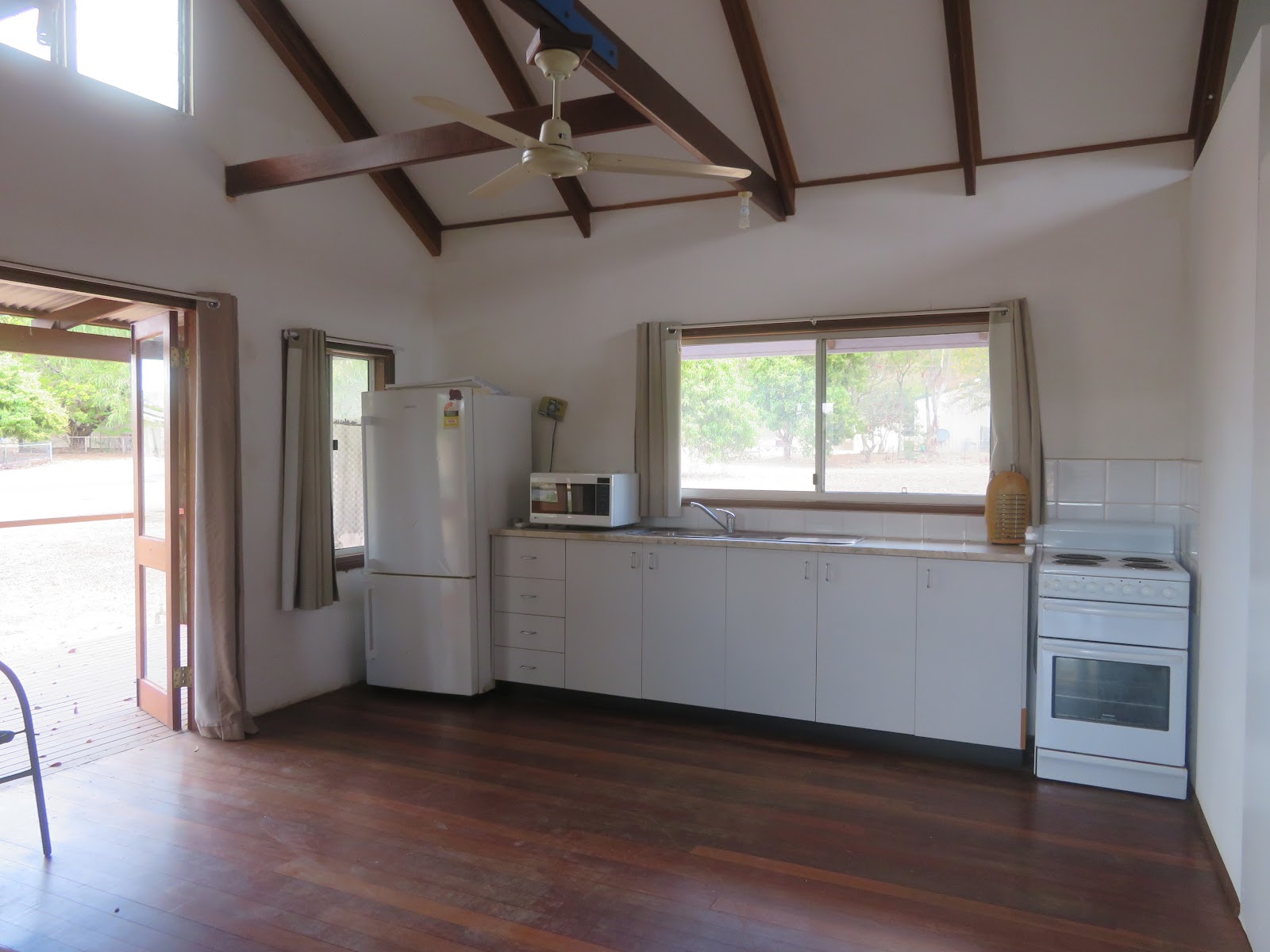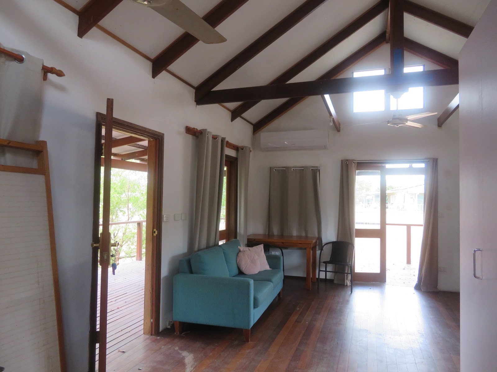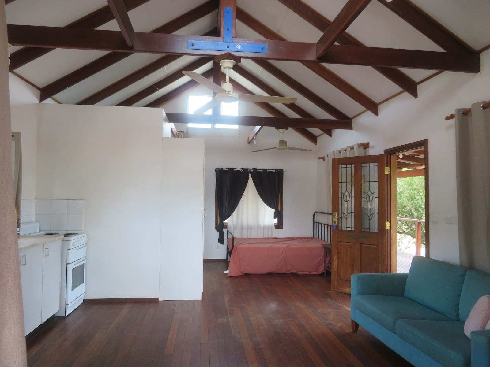Yes, funky with cathedral ceilings with exposed timber trusses, polished floors, timber french doors and windows opening onto the deck.