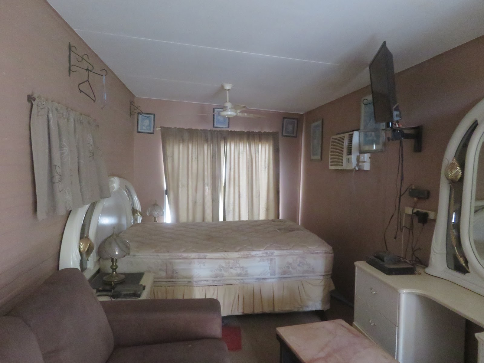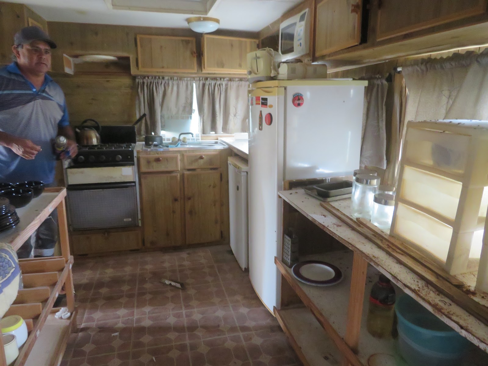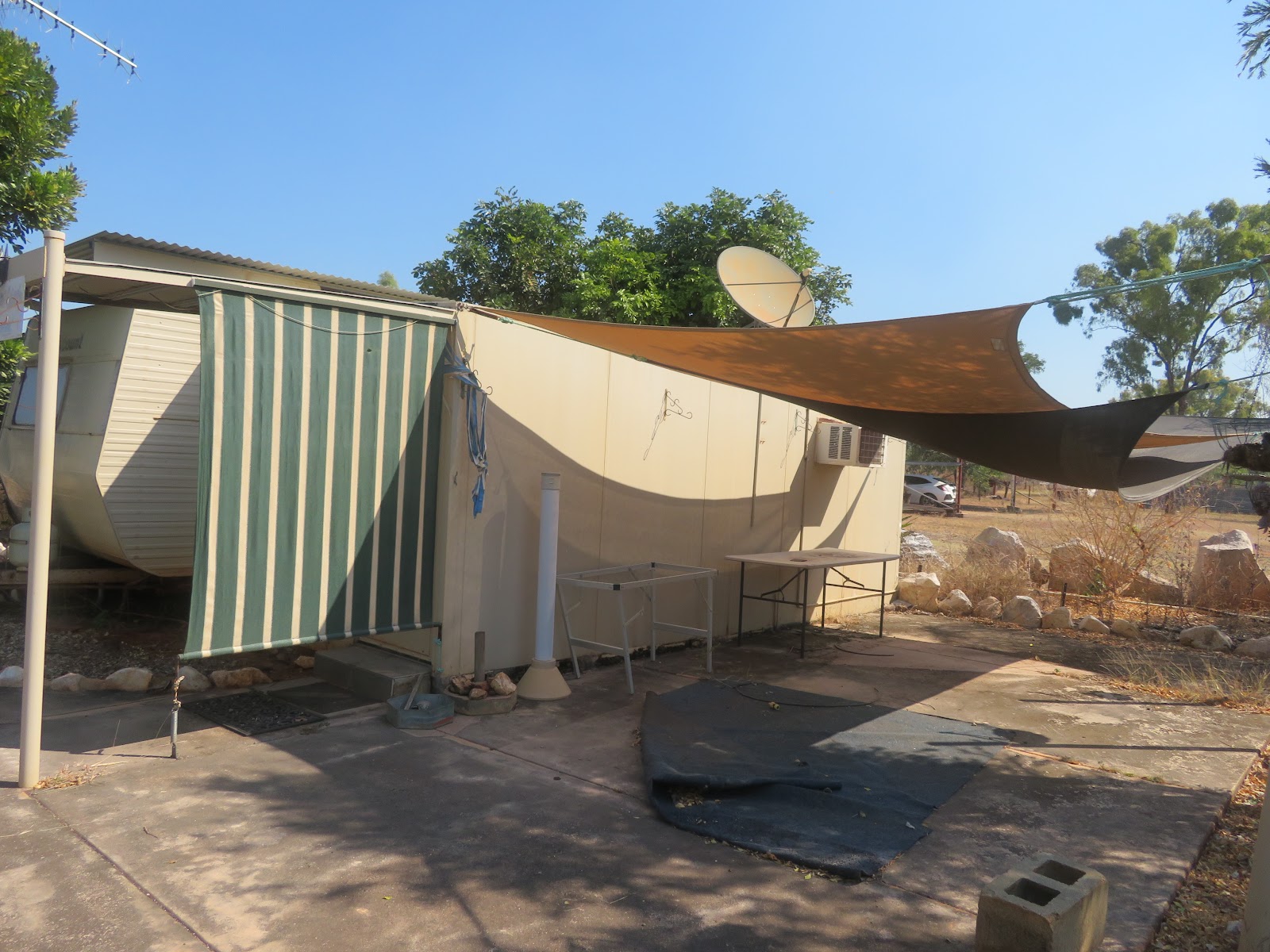 A caravan, that has seen better days awaits as temporary accommodation.
