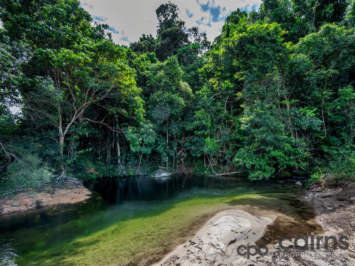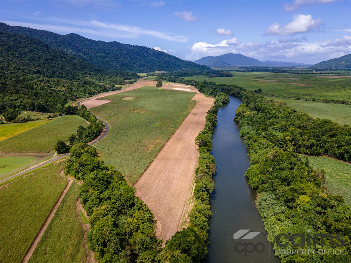 Lifestyle, Income & Freshwater Creek Close to Cairns 74 Acres of prime, fertile land bordering the Mulgrave River plus a cleared house and shed pad with power pole near the swimming hole, offers an outstanding opportunity to make the move to Tropical North Queensland a reality! The owners have done most of the hard work with securing council approvals to build on the cleared pad. All is left to do is submit your own building plans to council for approval.