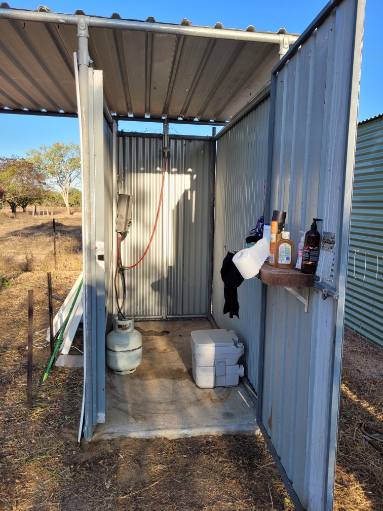 A 1.5x2m Lockable shed that has been used as a shower