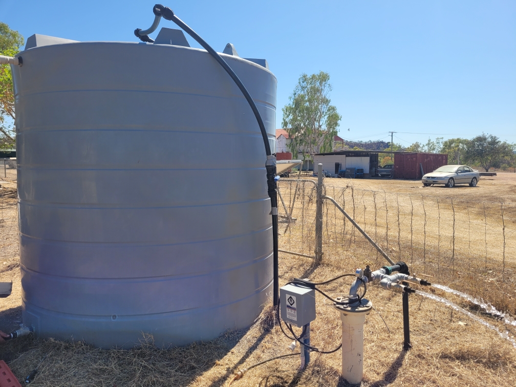 Bore with submersible pump and 5000L water tank